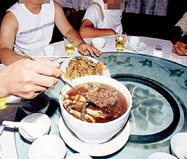 चीनको दक्षिणी गुआंगडोंग प्रान्तको एक ग्रामीण इलाकामा परम्परागत रुपमै यस्तो बेबी सुप खाने चलन छ ।