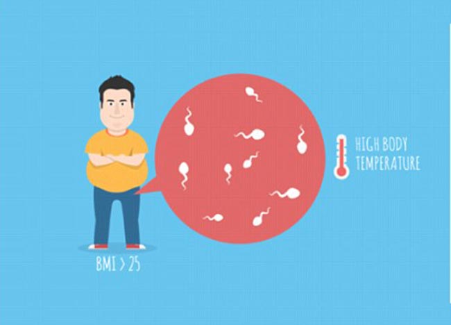 मोटोपना बढ्दै जाँदा शुक्रकिटको संख्या घट्दै जाने देखिएको छ । मोटोपनाको मापक मानिने बडी मास इन्डेक्स २४ भन्दा बढि हुँदा २२ प्रतिशत शुक्रकिटको संख्यामा गिरावट आउँछ । बढि दुब्लो हुनुपनि पुरुषत्वको हिसाबले राम्रो होइन । बिएमआइ १८.६ भन्दा कम हुनेहरुमा विर्य तथा शुक्रकिटकै उत्पादन ८.६ प्रतिशत कम हुने अध्ययनले देखाएको छ । बढि दुव्लो मानिसको अण्डकोषले उत्पादन गर्ने शुक्रकिटको गति तथा गुणस्तर समेत कमजोर हुने पाइएको छ ।